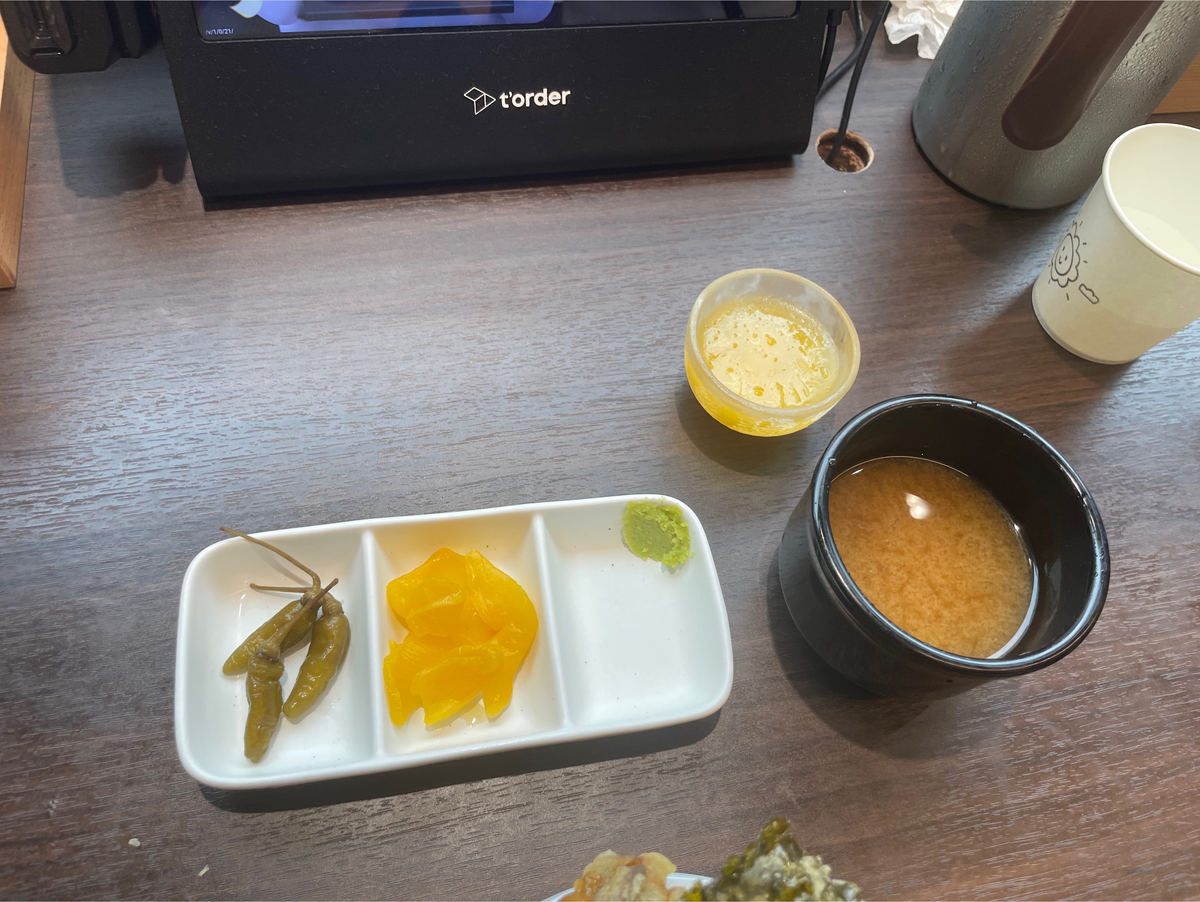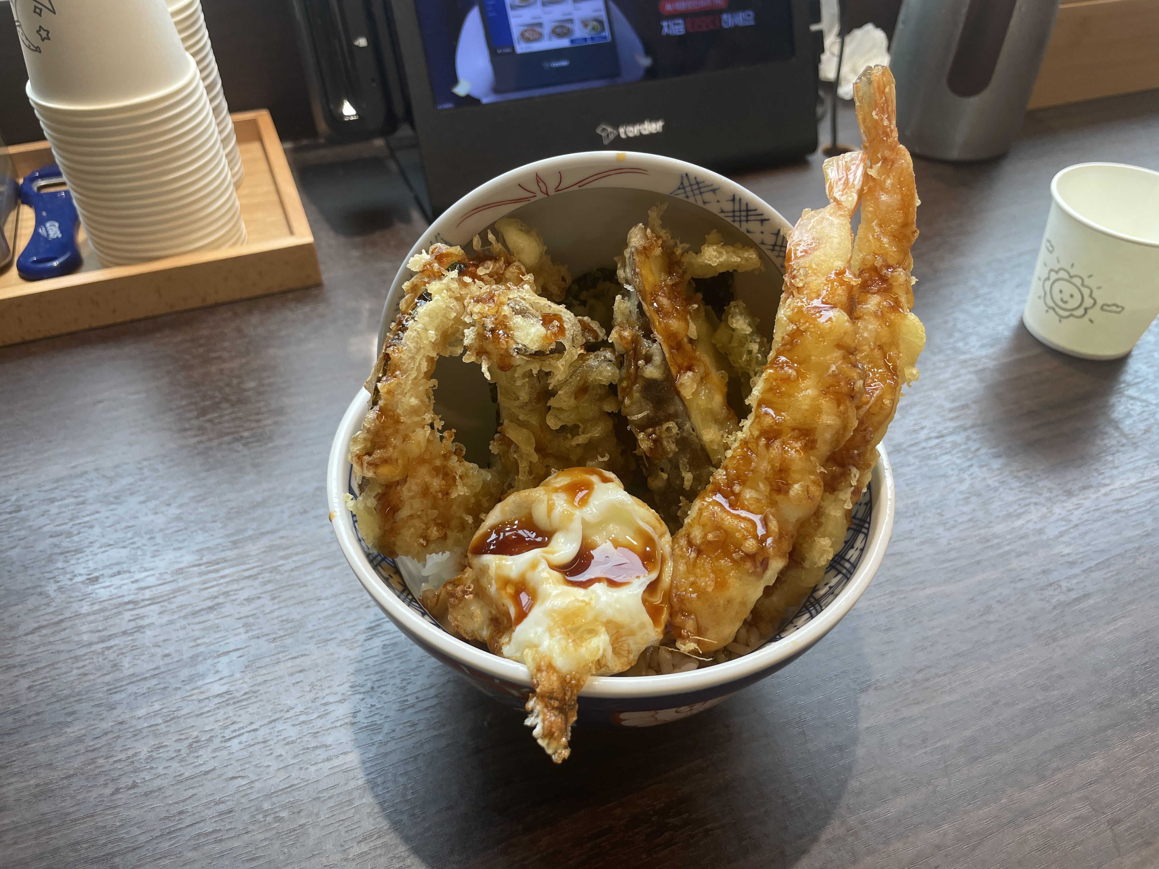 주문한 메뉴가 나오자마자 남편과 저는 동시에 감탄했어요. 튀김이 정말 바삭해 보였고, 특유의 고소한 향이 퍼졌거든요. 특히, 텐동에 올라간 새우튀김이 생각보다 훨씬 큼직해서 먹기 전부터 기대가 됐어요.
