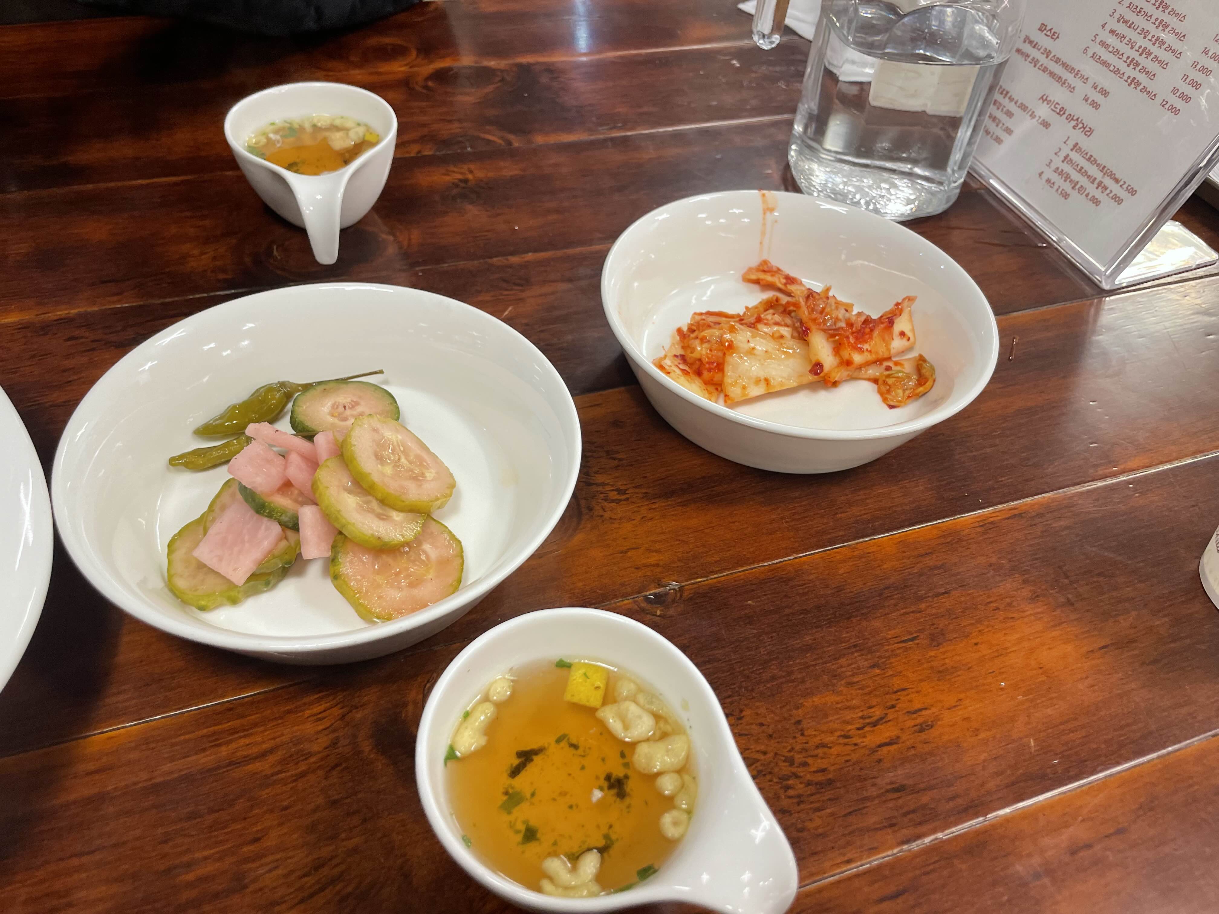 다른 밑반찬들은 셀프다. 국물도 리필 가능한데 그릇이 작아 아쉬웠다.
