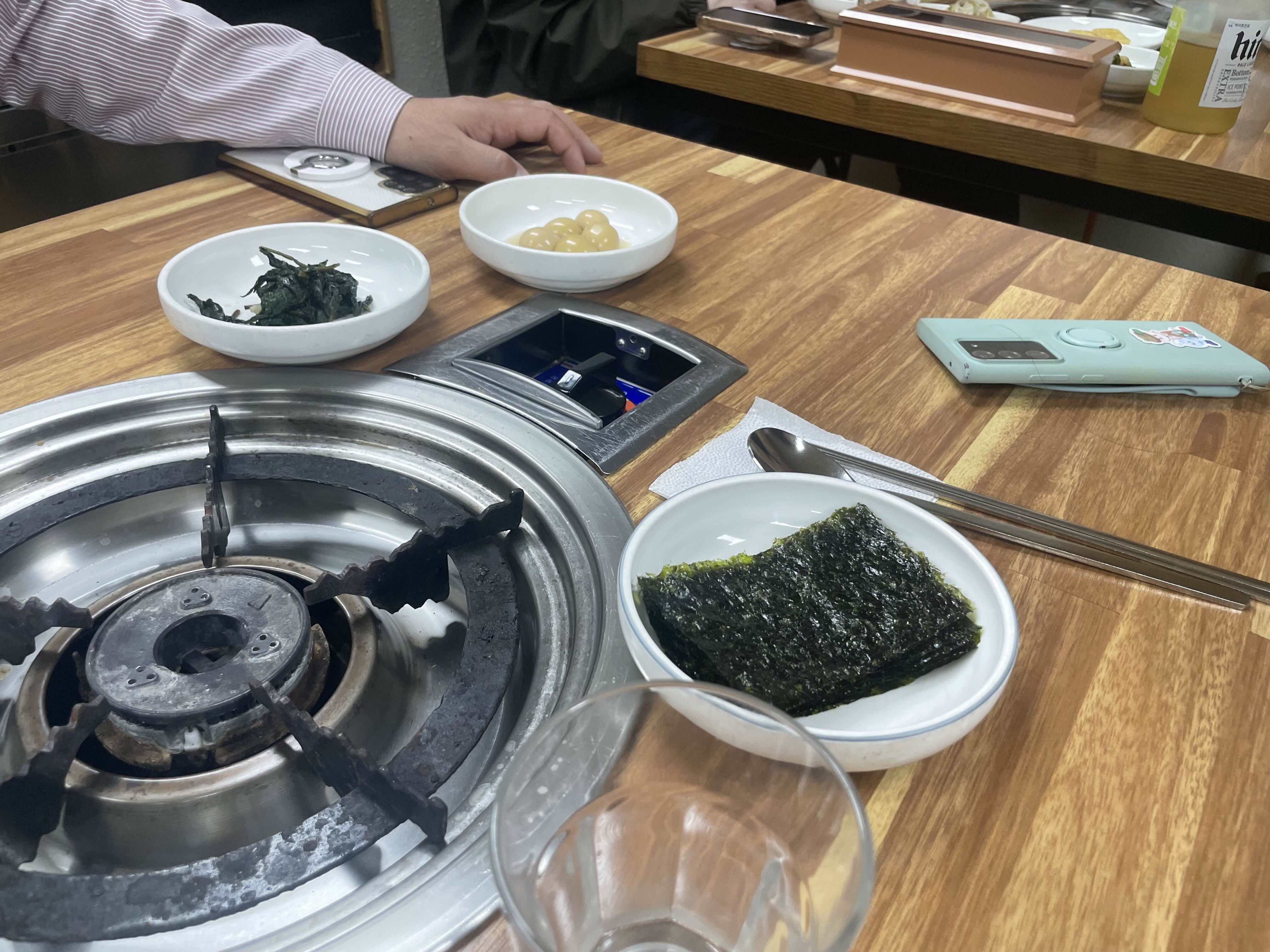 자리에 앉자마자 나오는 기본찬들이에요. 마른김, 장아찌, 미역줄기 같은 익숙한 밑반찬이 한상 차려졌어요. 요즘은 이런 반찬도 다 정성인데, 하나하나 손이 가는 구성이라 만족스러웠어요.