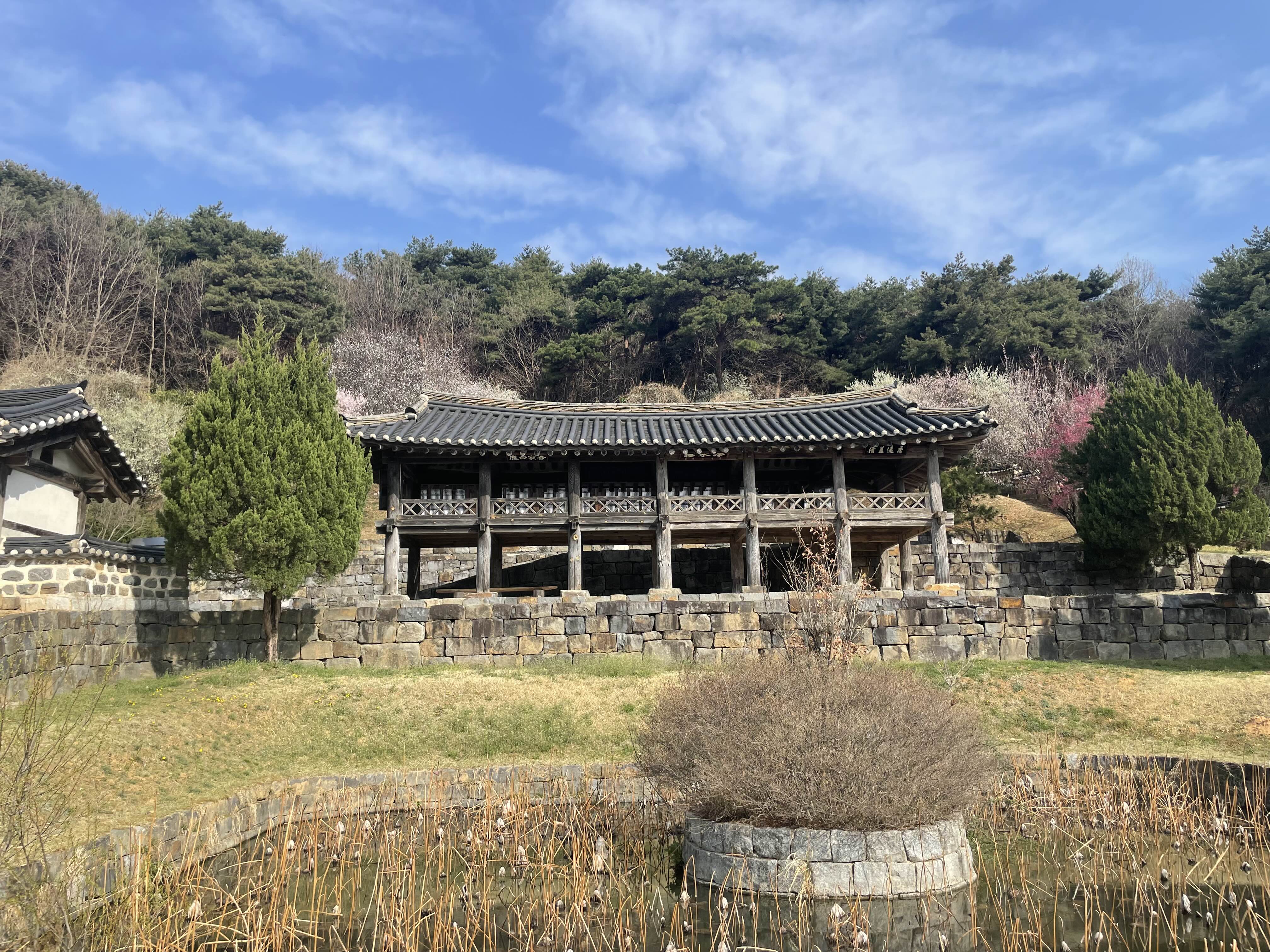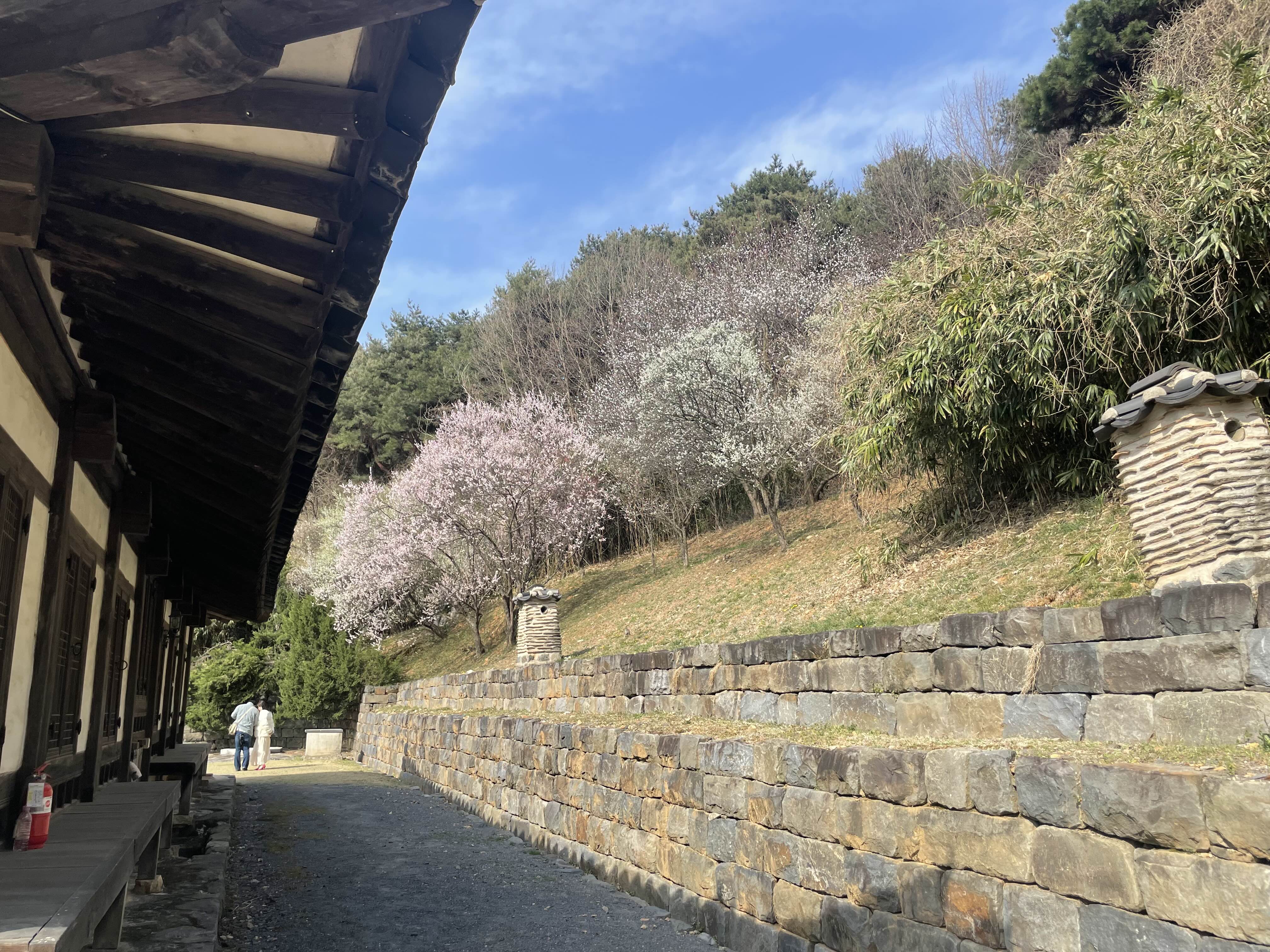 조용한 한옥 건물 뒤편으로 펼쳐진 매화나무 군락은 자연과 건축의 조화를 더욱 뚜렷하게 보여줍니다. 고즈넉한 돌담을 따라 이어지는 산책길은 관광객뿐 아니라 지역 주민들에게도 인기 있는 힐링 공간입니다.