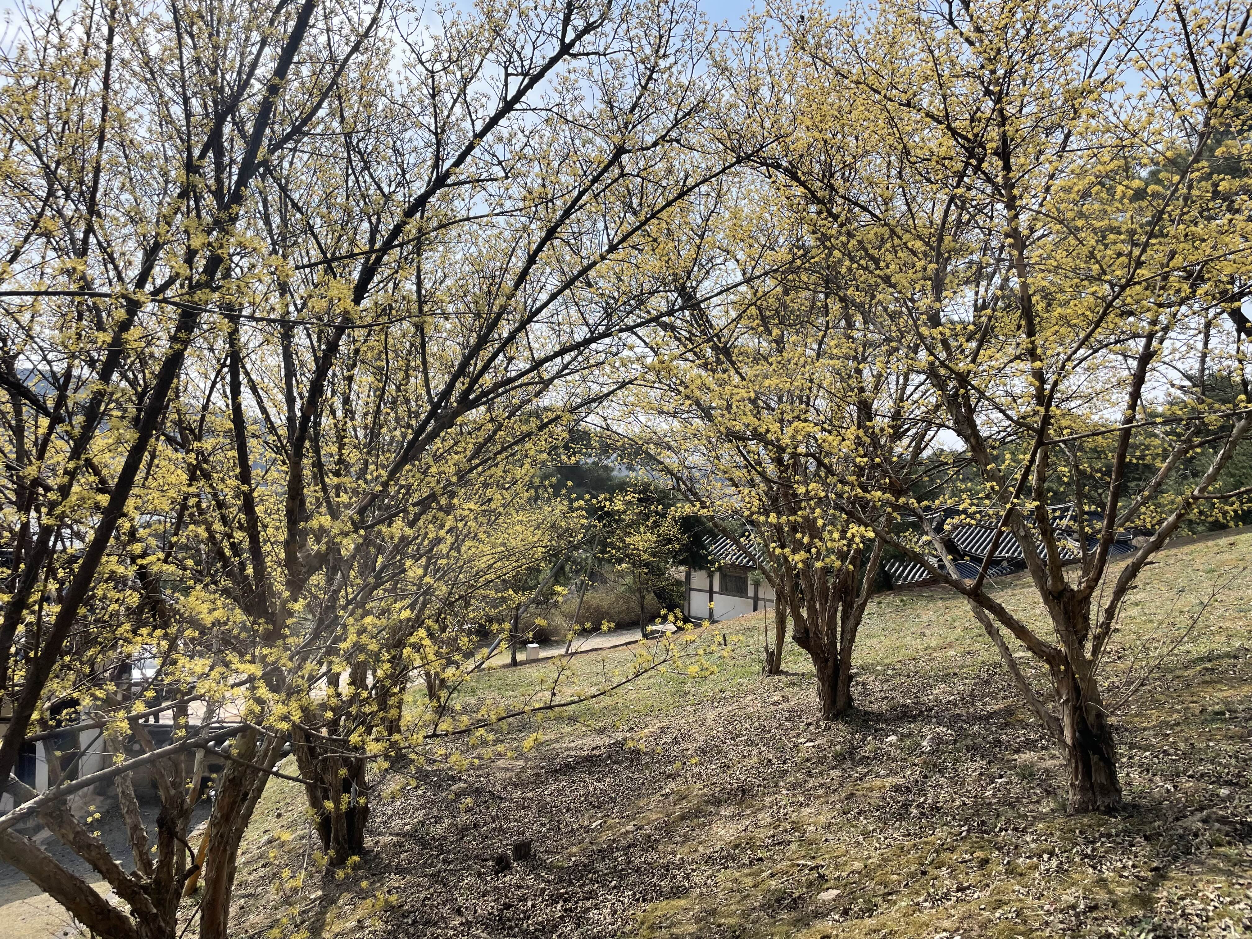 산수유가 만개한 오솔길을 따라 걷다 보면, 봄이 성큼 다가왔음을 실감하게 됩니다. 노란 꽃잎이 마치 봄을 알리는 종처럼 반짝이며, 가족 단위 관람객이나 연인들이 함께 산책하기에 더없이 좋습니다.