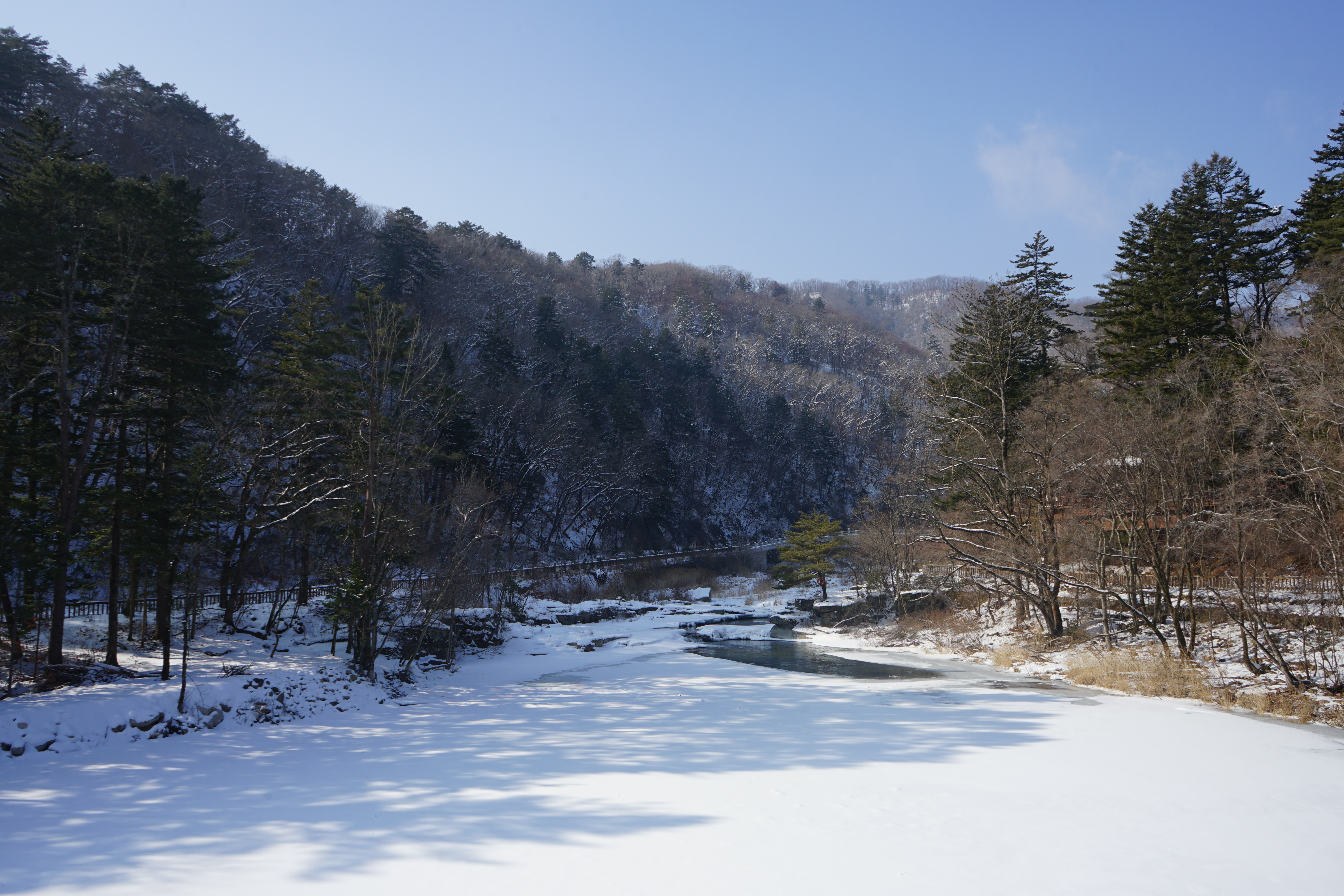 뽀득 뽀득 눈 밟으며 물소리 감상.