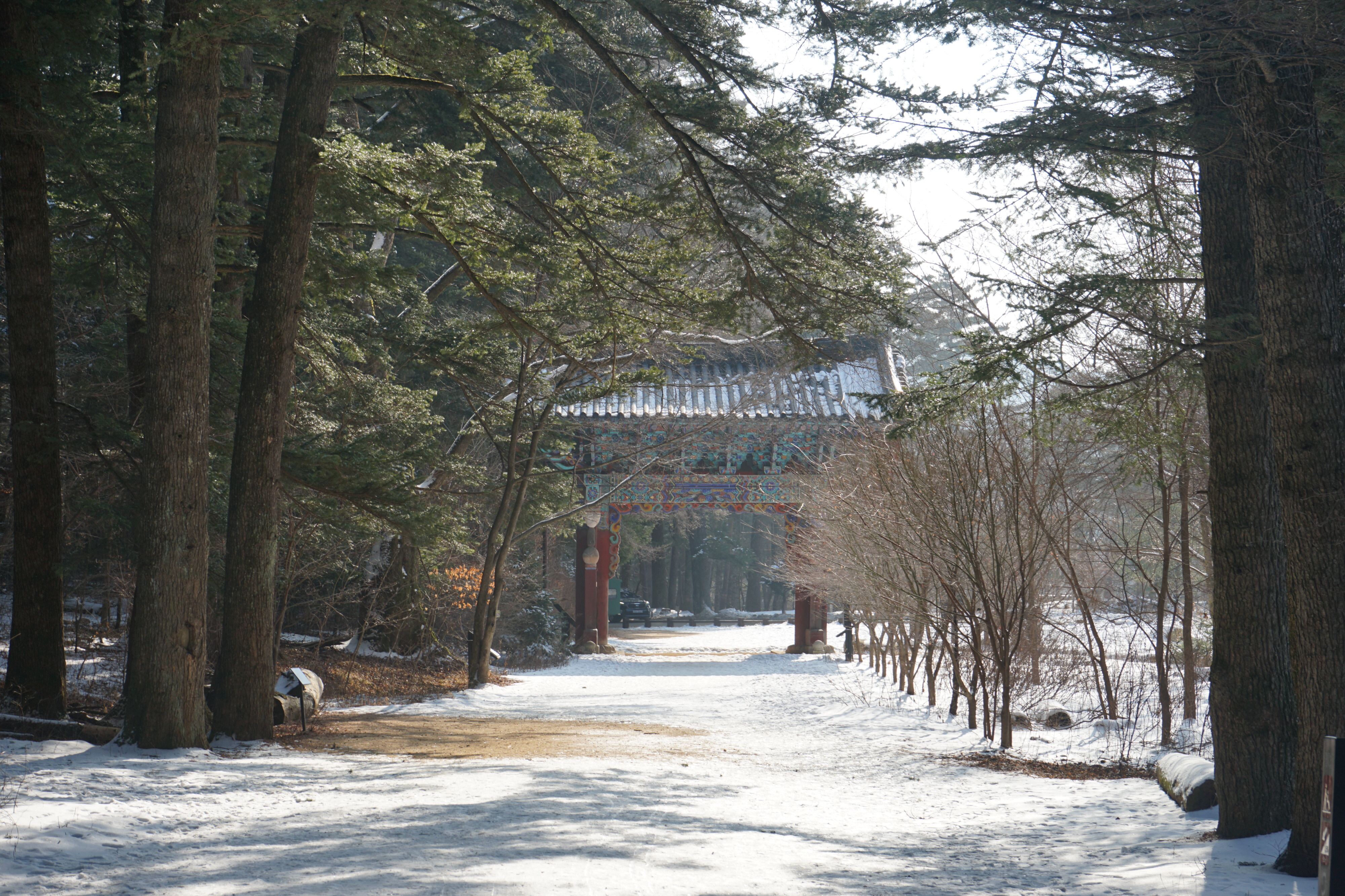 월정사로 가는 편의 길에는 빛이 덜 들어 그런지