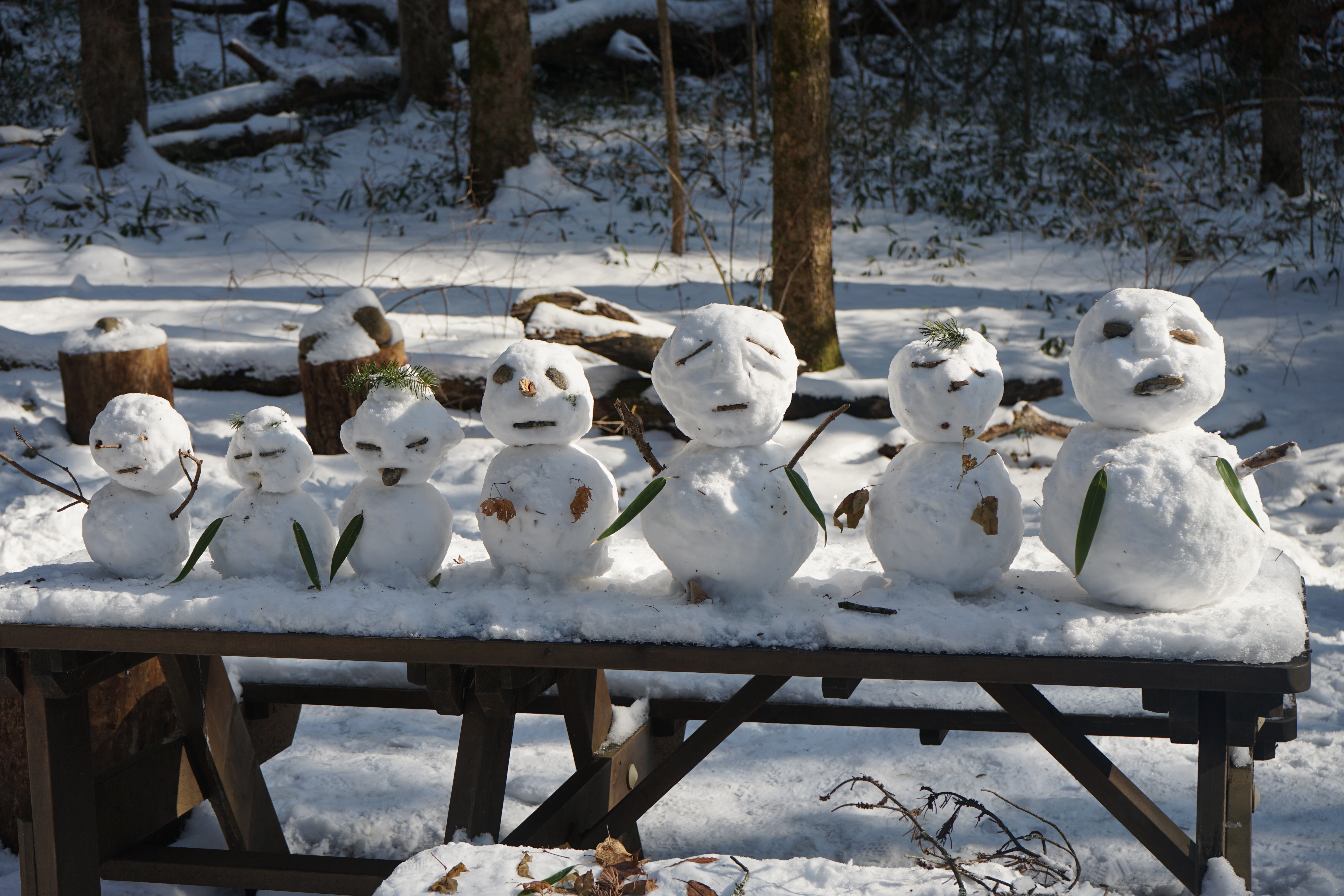 곳곳에 누군가 만들어 둔 눈사람이 있어
