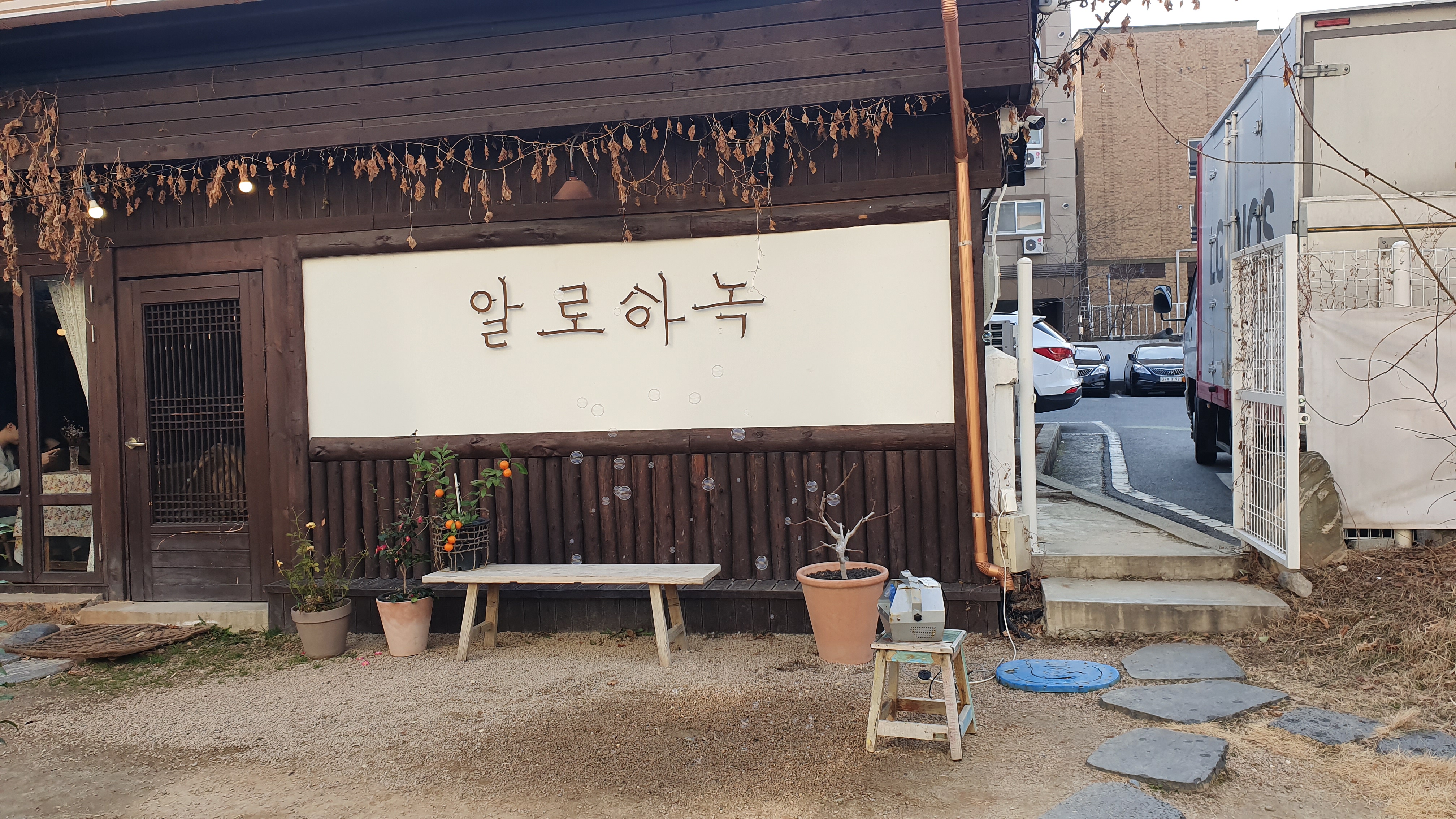 주택가 사이로 트인 마당이 보이면 알로하녹이 맞다.