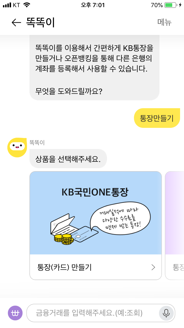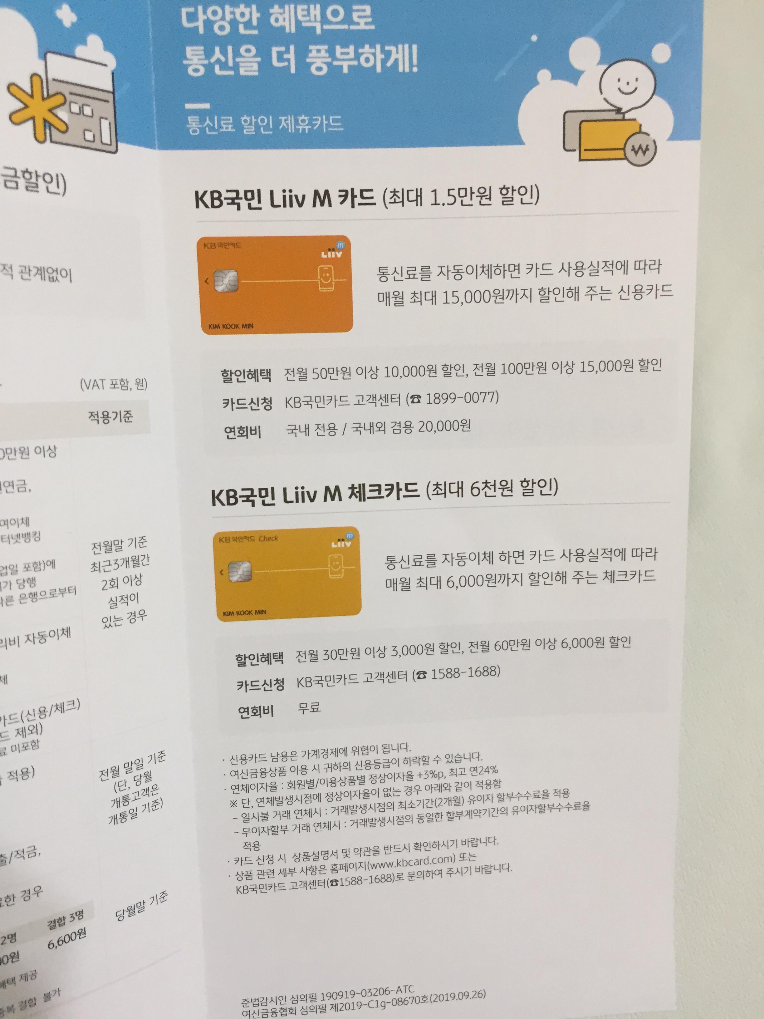 직접 국민은행 계좌 개설 후 유심을 수령받아 개통해 보았다.