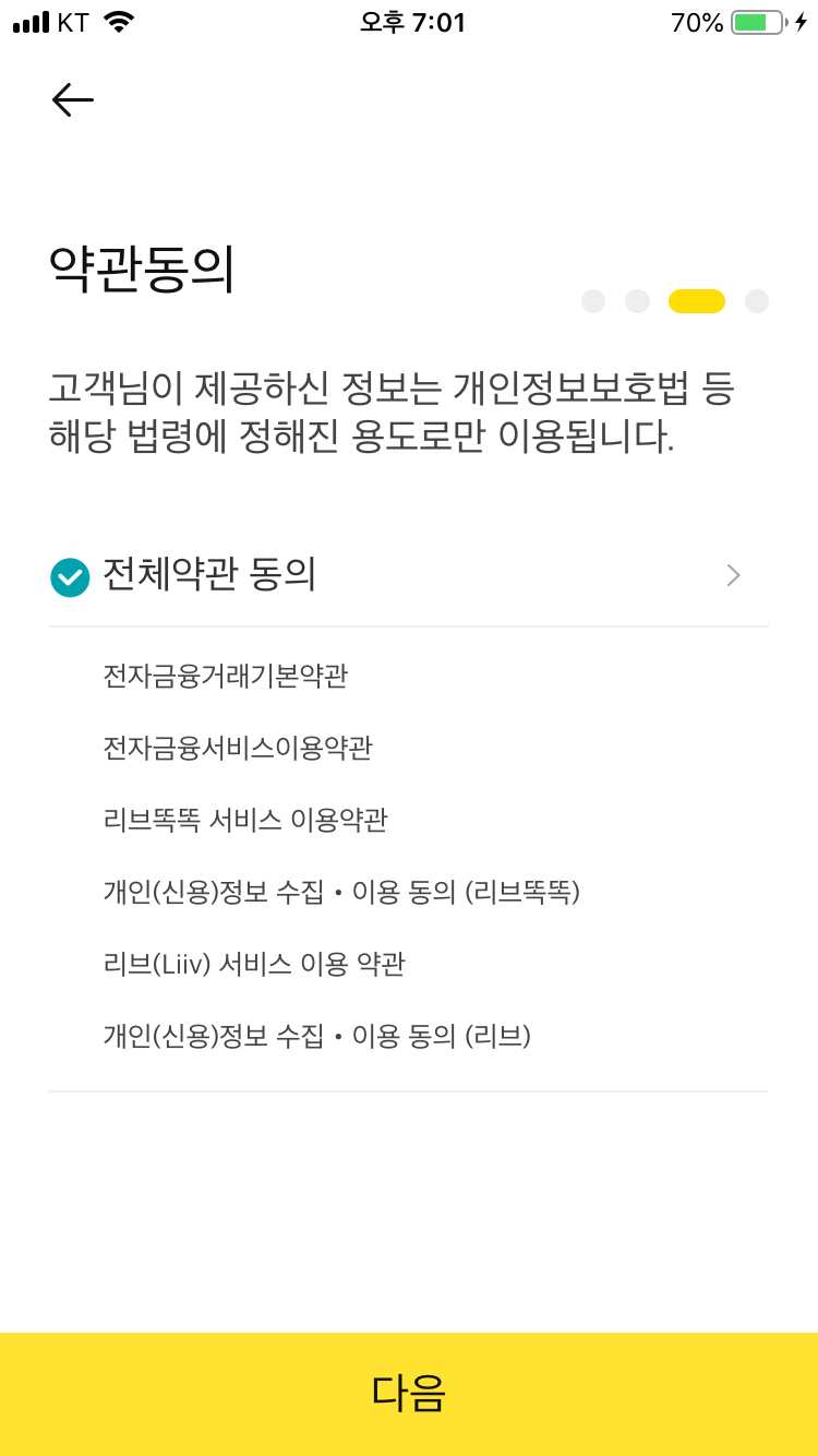 1. 모바일앱 리브똑똑에서 국민은행 비대면 계좌 개설(신분증 필요)