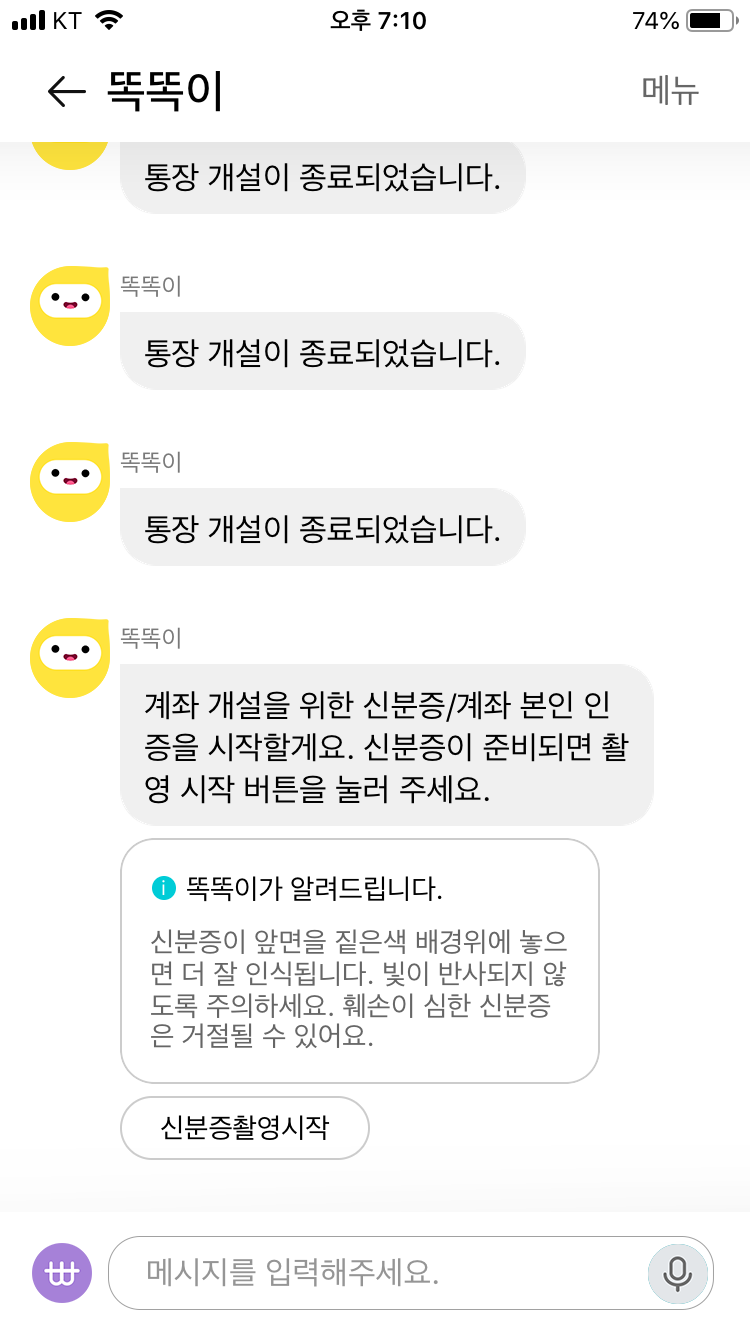 계좌 개설을 위한 신분증 촬영을 하면 된다.