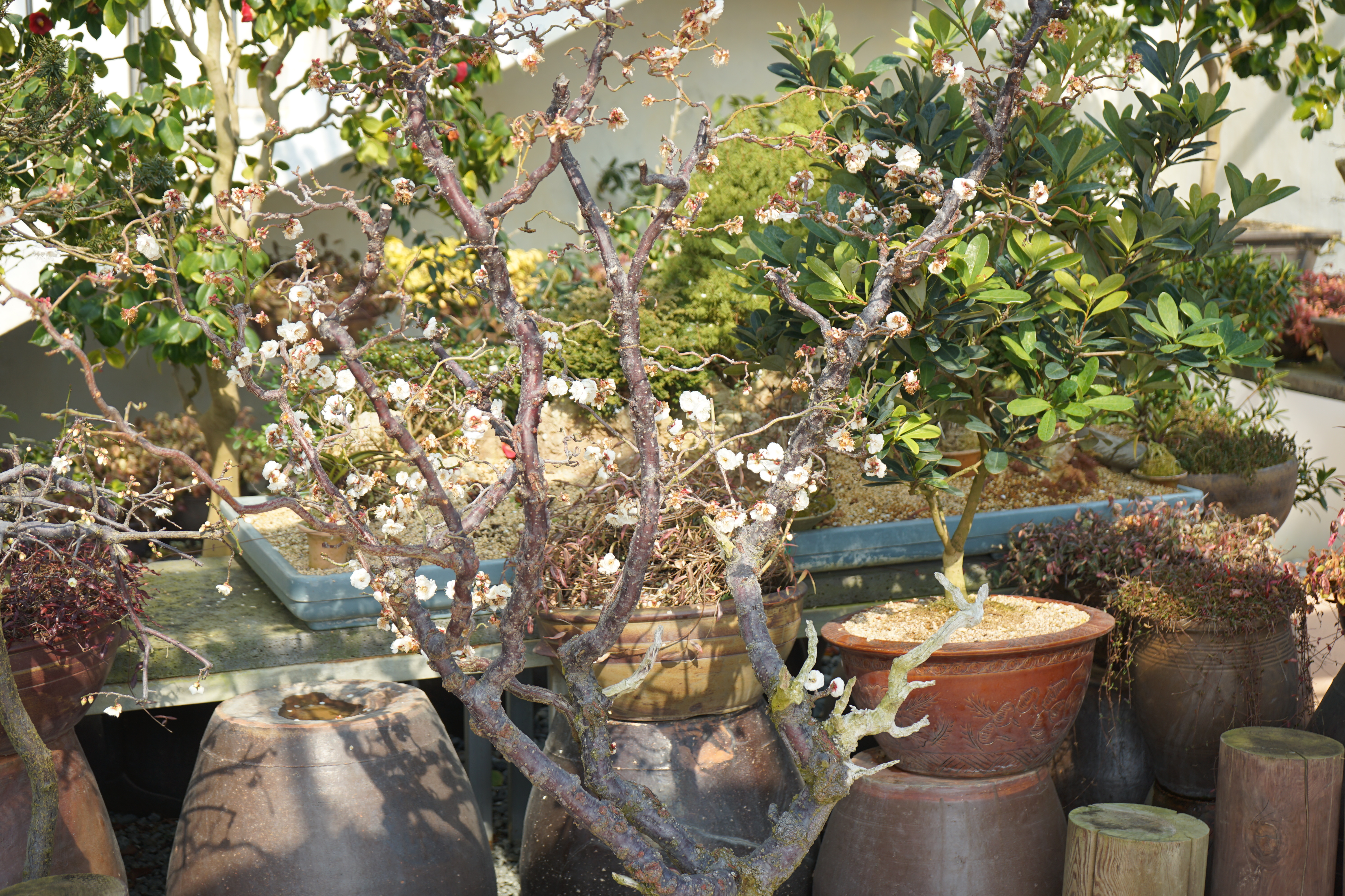 분재 기념관의 매화 분재.