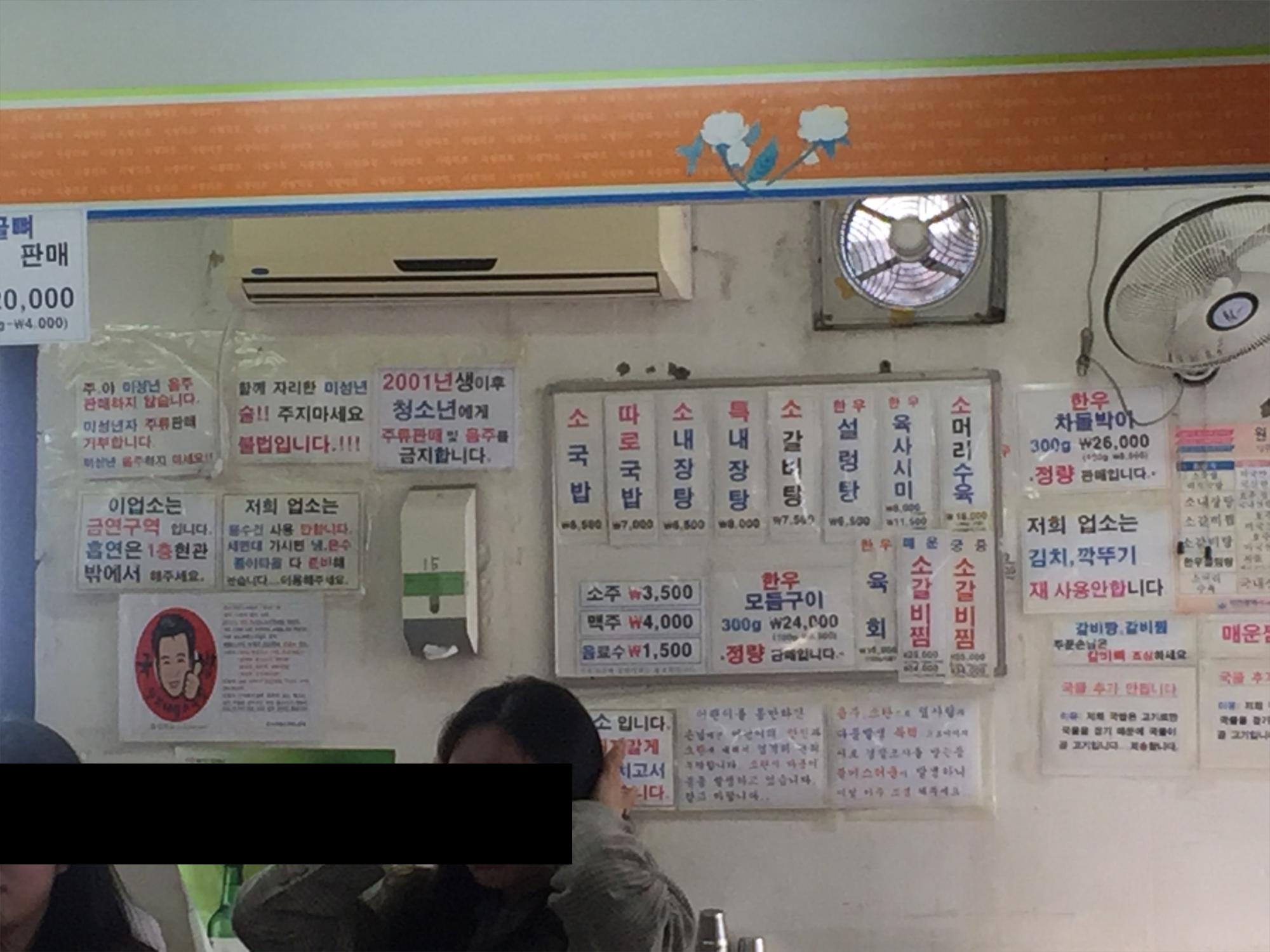 태평 소국밥 내부의 벽에도 붙어있는 메뉴판들.