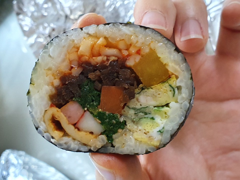낯선 사람과의 대화에 익숙하지 않은 나로서는 당황스럽긴 했지만 그래도 김밥 맛은 인정하는