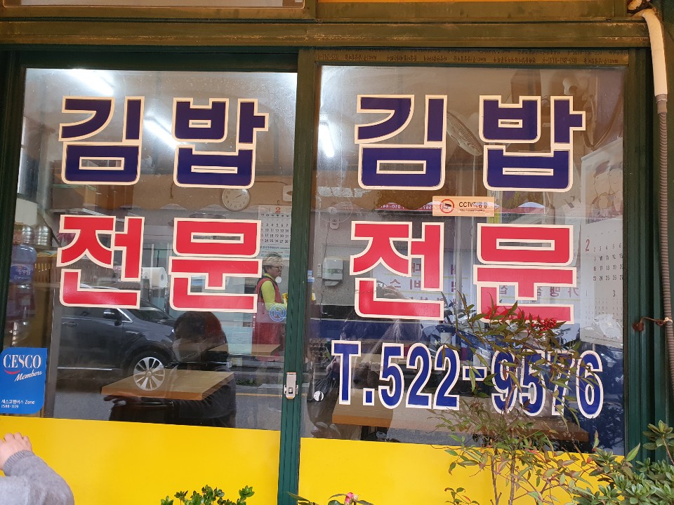 김밥 전문이라는 큰 글씨로 전문가 포스를 알리는 집.