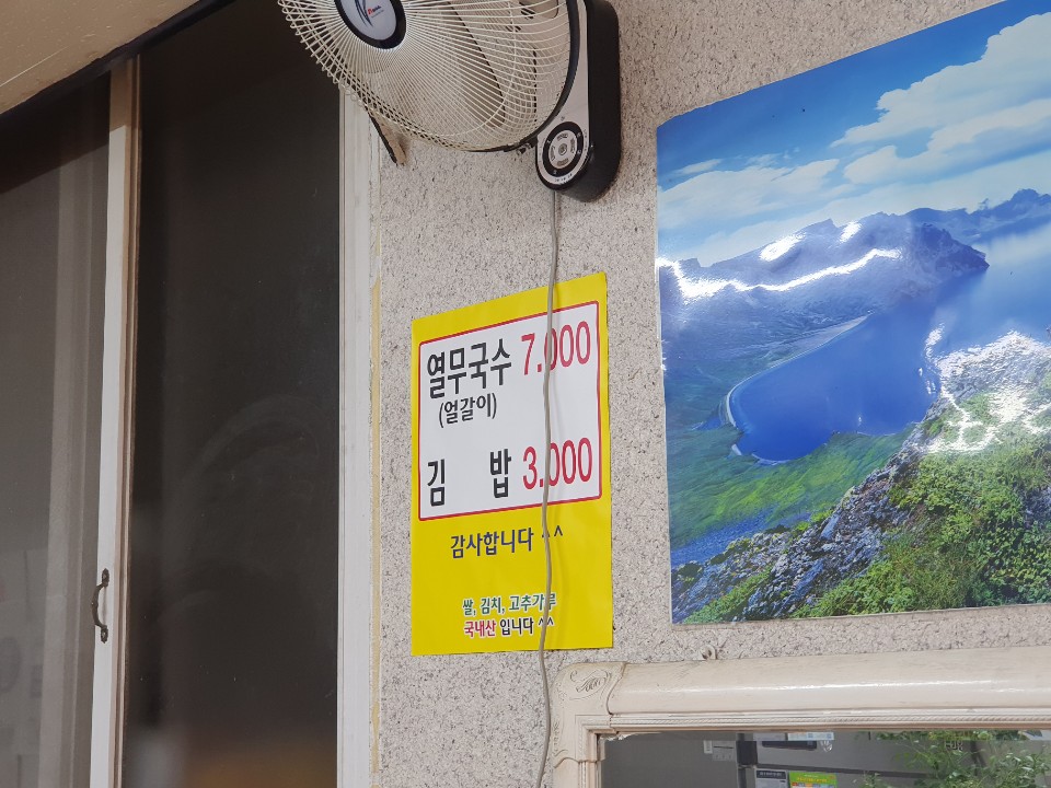 메뉴는 열무국수와 김밥 두 가지였다.