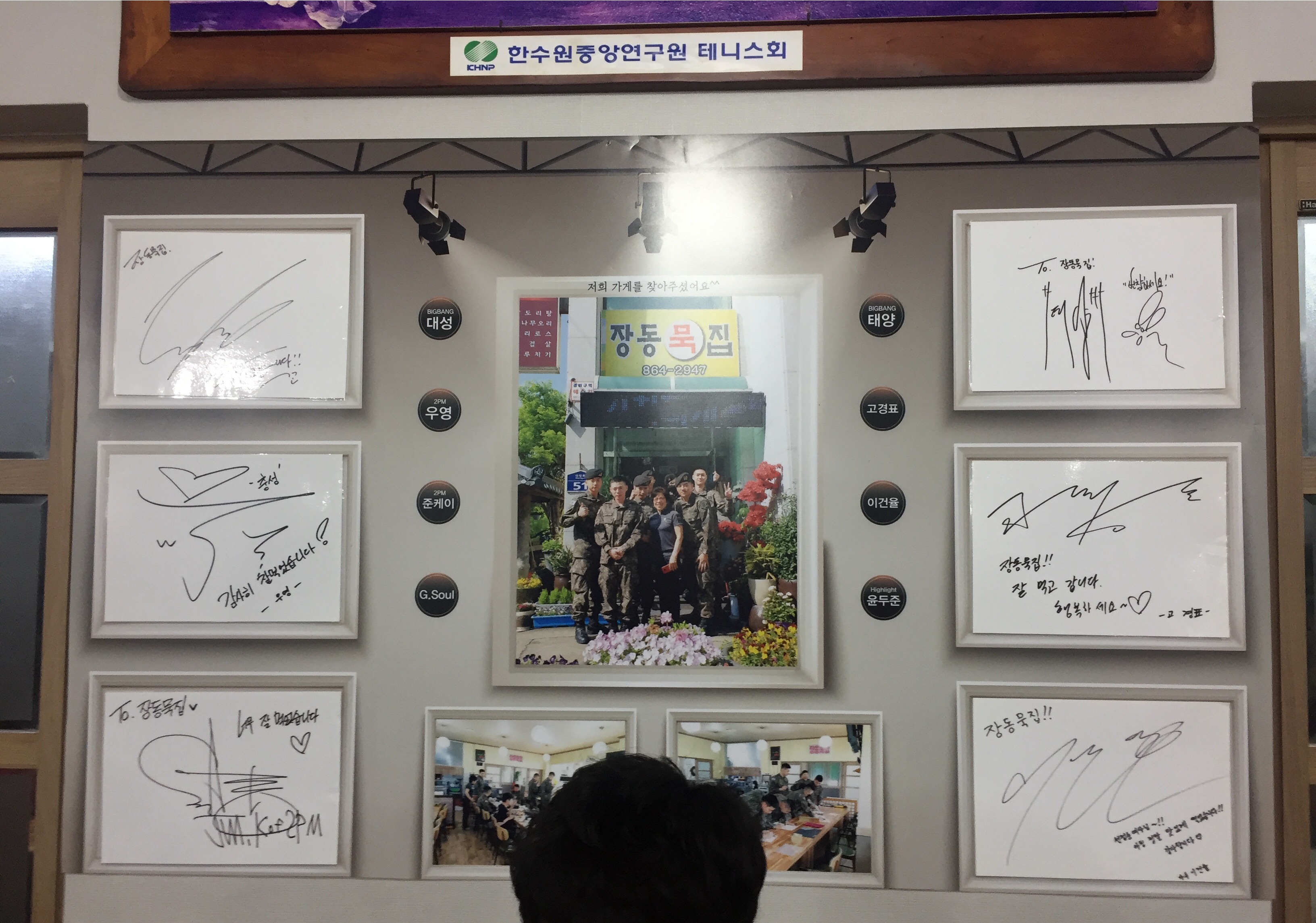 연예병사들이 한꺼번에 다녀갔는지 태양에 고경표, 대성 우영 등의 연예인 싸인이 많았다.
