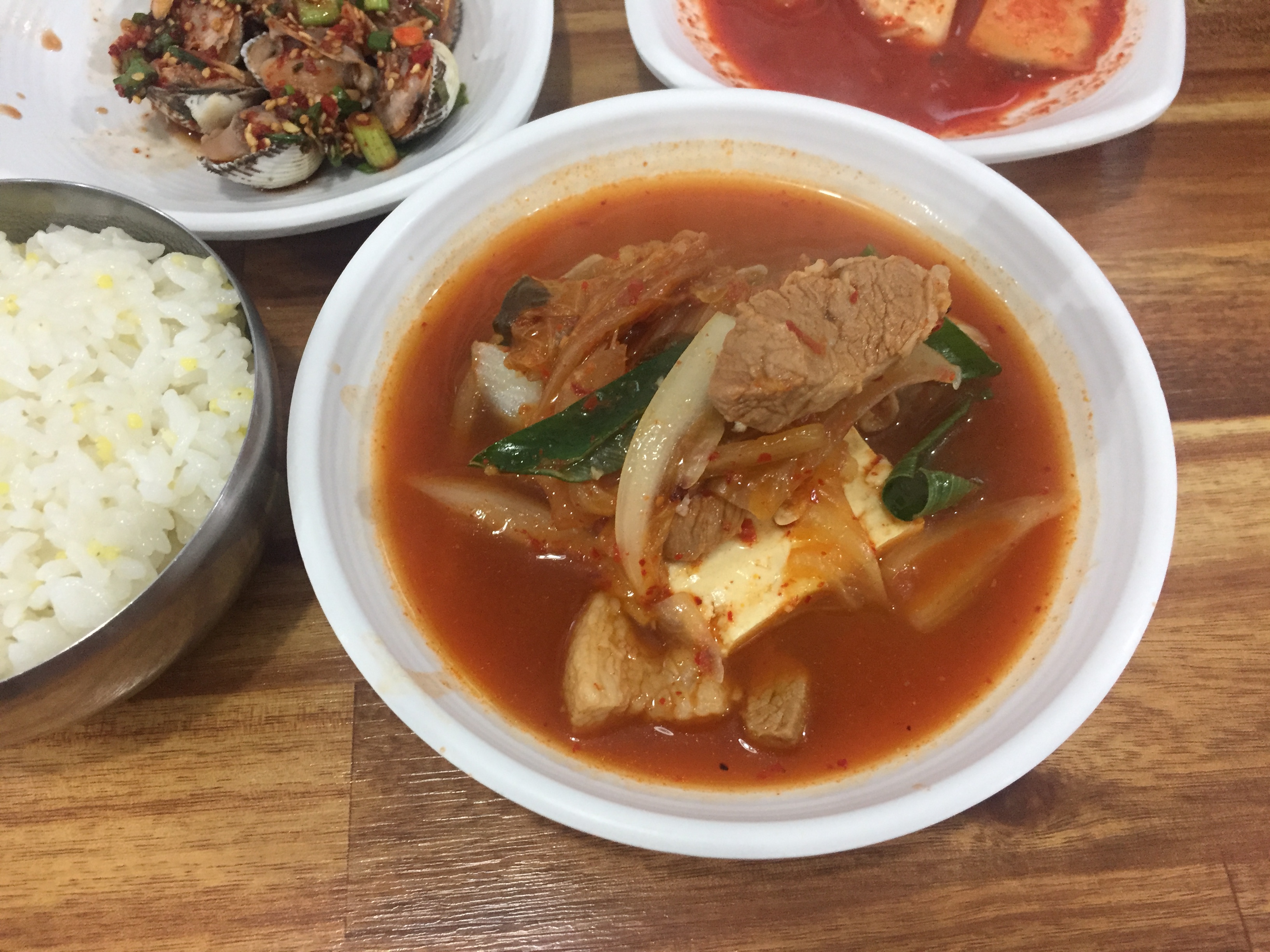 강렬하진 않지만 깔끔하고 두부, 김치, 돼지고기 등이 가득 들어있어 밥 한 공기 맛있게 비우기 충분했다.
