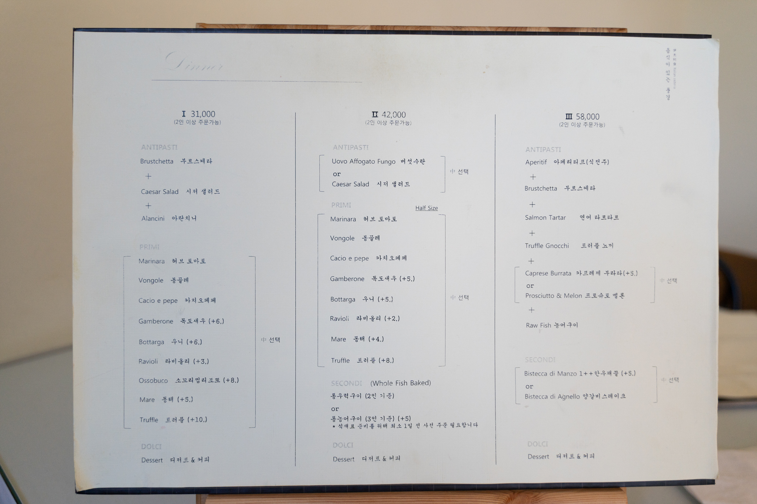 음식이 있는 풍경의 코스 요리는 세 가지가 있다.