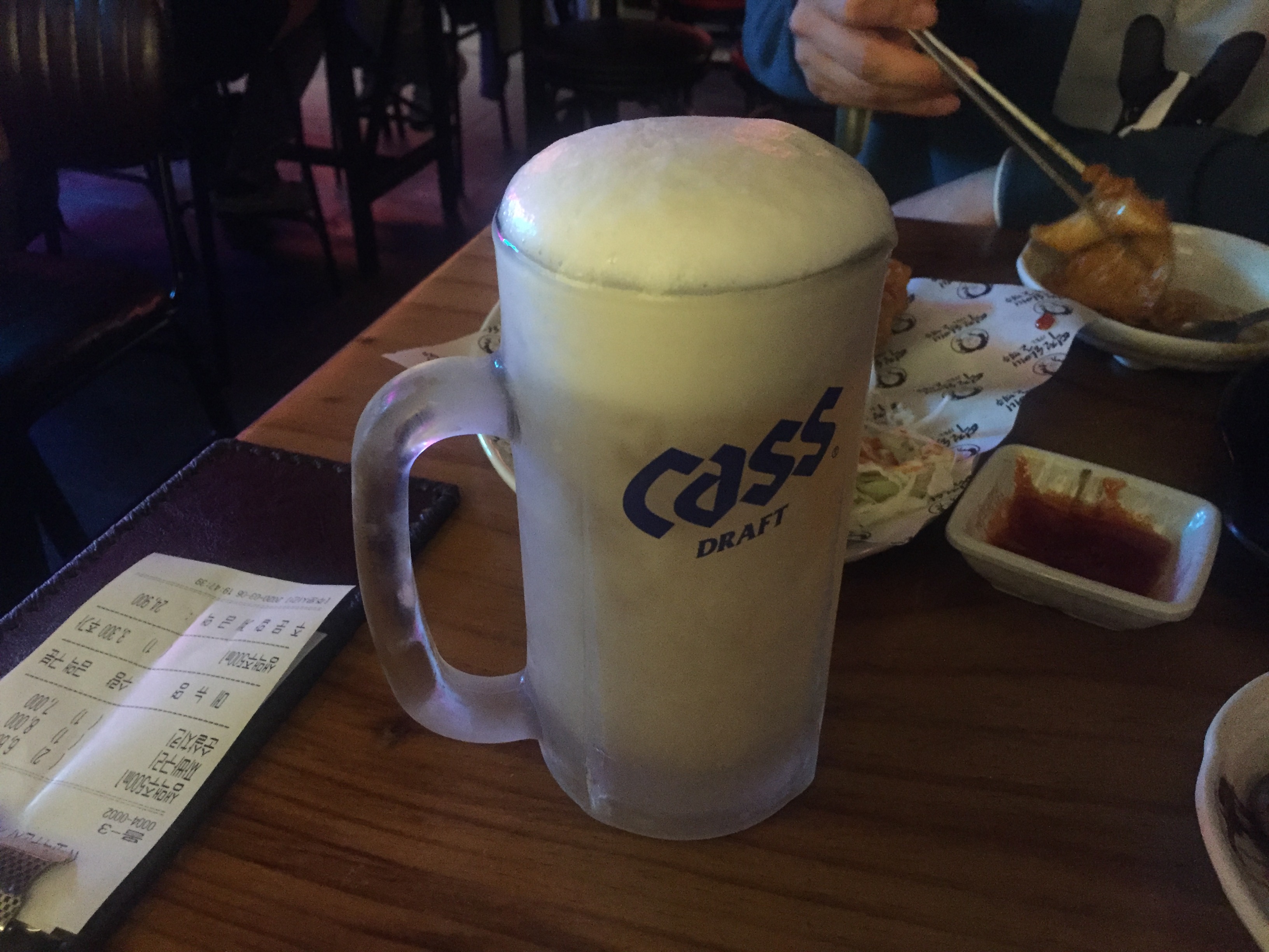맥주에 무슨 짓을 한건지 솜사탕같은 거품 비주얼에 살얼음도 약간 씹히는 것이 정말 맛있다.