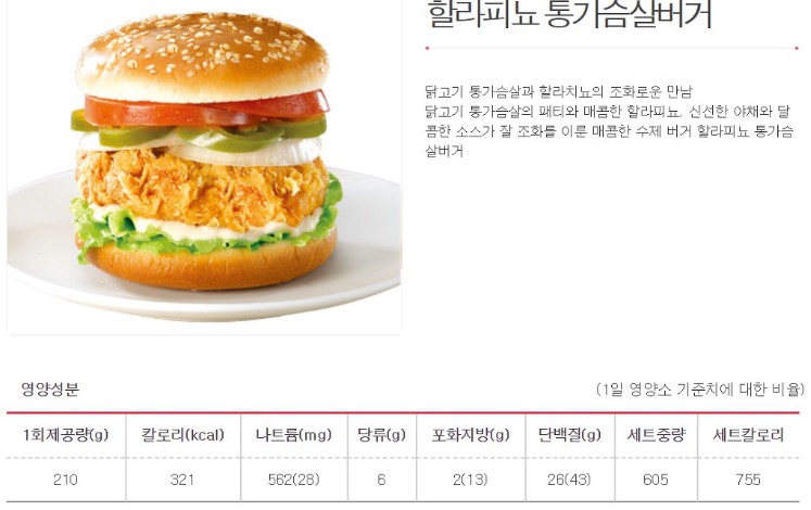 왜냐하면 할라피노 통가슴살버거의 칼로리가 321kcal였기 때문이다.