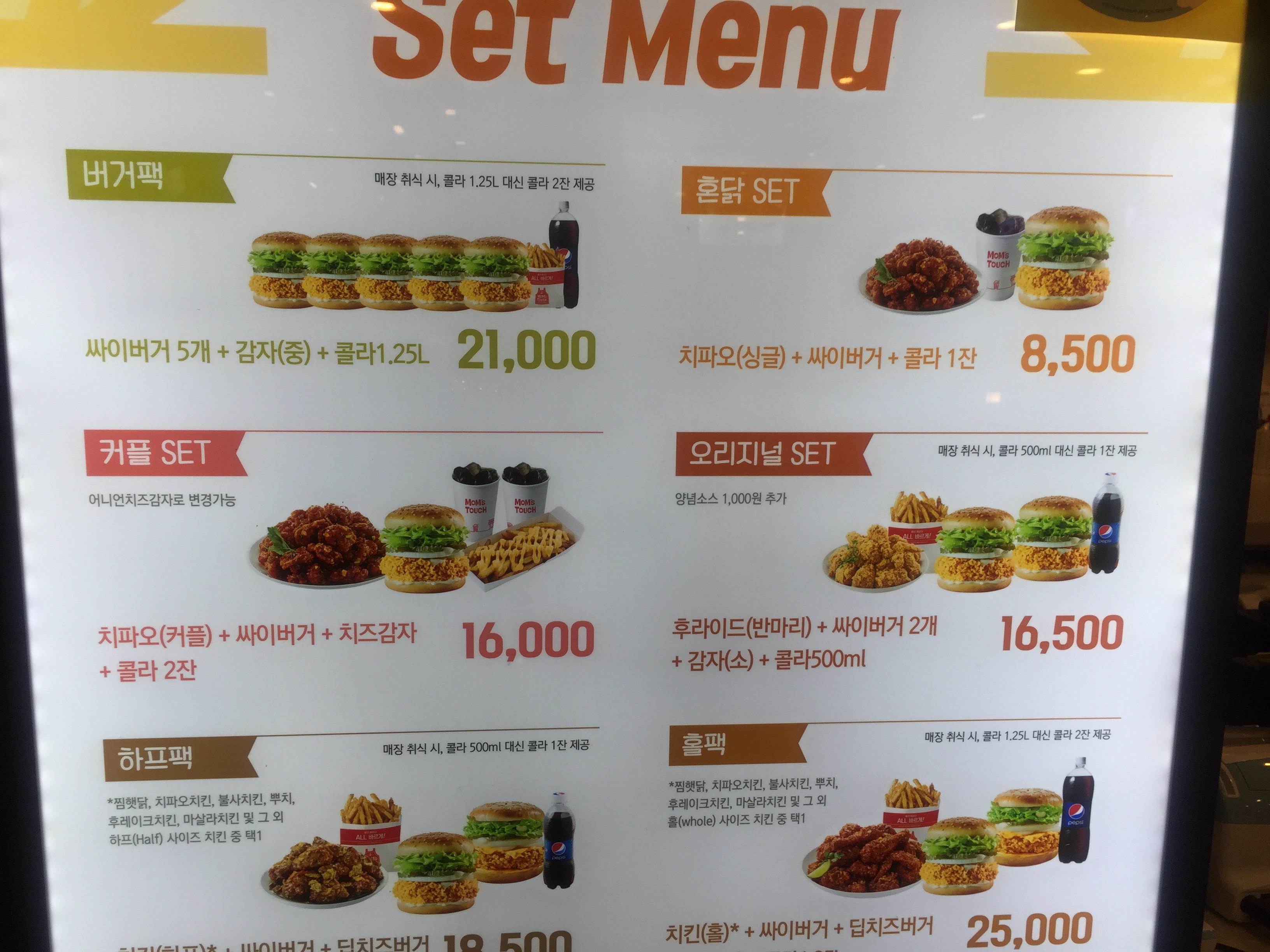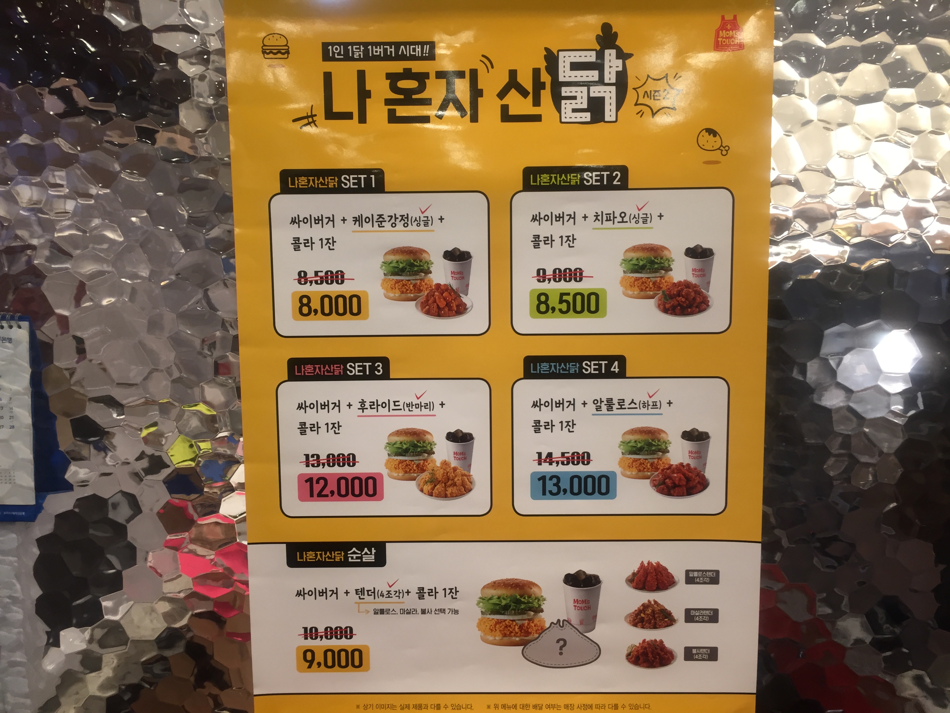 1인 세트 메뉴로 치킨과 버거를 함께 먹을 수 있는 세트도 있으니 참고.
