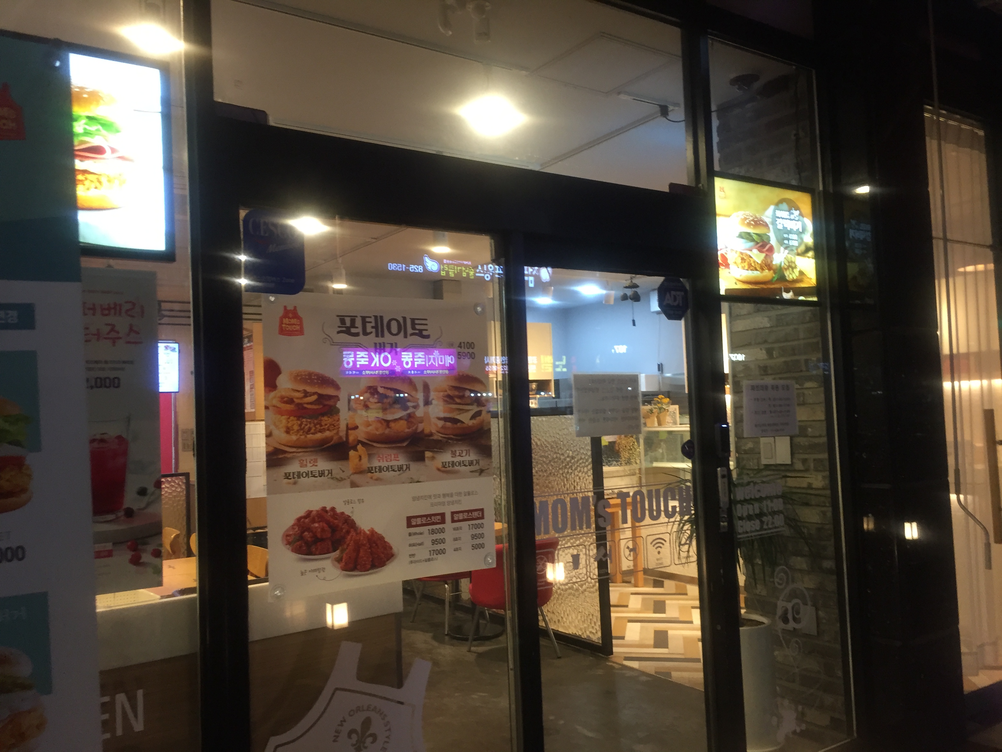 롯데리아에 비해 문을 일찍 닫아 한번 헛걸음했던 적이 있는 맘스터치 죽동점.